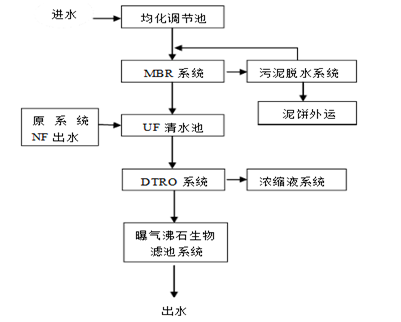 城市垃圾填埋場(chǎng)滲濾液的處理一直是填埋場(chǎng)設(shè)計(jì)、運(yùn)行和管理中非常棘手的問(wèn)題。滲濾液是液體在填埋場(chǎng)重力流動(dòng)的產(chǎn)物,主要來(lái)源于降水和垃圾本身的內(nèi)含水。由于液體在流動(dòng)過(guò)程中有許多因素可能影響到滲濾液的性質(zhì),包括物理因素、化學(xué)因素以及生物因素等,所以滲濾液的性質(zhì)在一個(gè)相當(dāng)大的范圍內(nèi)變動(dòng)。 城市垃圾填埋場(chǎng)滲濾液是一種成分復(fù)雜的高濃度有機(jī)廢水,若不加處理而直接排入環(huán)境,會(huì)造成嚴(yán)重的環(huán)境污染。以保護(hù)環(huán)境為目的,對(duì)滲濾液進(jìn)行處理是必不可少的。 一般來(lái)說(shuō),其pH值在4~9之間,COD在2000~62000mg/L的范圍內(nèi),BOD5從60~45000mg/L,重金屬濃度和市政污水中重金屬的濃度基本一致。垃圾滲濾液具有不同于一般城市污水的特點(diǎn):BOD5和COD濃度高、金屬含量較高、水質(zhì)水量變化大、氨氮的含量較高,微生物營(yíng)養(yǎng)元素比例失調(diào)等 垃圾填埋場(chǎng)由于其特性,單一的處理方法并不能將其處理達(dá)標(biāo),必須采用多種工藝相結(jié)合的方法。 1、常見(jiàn)的綜合處理流程如下: (1)MBR+DTRO+沸石生物濾池處理工藝 說(shuō)明:該工藝中的MBR設(shè)置由一級(jí)反硝化系統(tǒng),一級(jí)硝化系統(tǒng)和二級(jí)反硝化系統(tǒng),二級(jí)硝化系統(tǒng)構(gòu)成。一級(jí)反硝化系統(tǒng)主要是將硝態(tài)氮轉(zhuǎn)化為N2,去除部分BOD。一級(jí)硝化去除一級(jí)反硝化剩余的BOD。經(jīng)過(guò)一級(jí)反應(yīng)之后,絕大部分的BOD被去除。二級(jí)反硝化碳源不足時(shí),需外加碳源,提高對(duì)總氮的去除率。二級(jí)硝化主要去除二級(jí)反硝化中多余的碳源。該系統(tǒng)設(shè)置碳源投加系統(tǒng)主要用于老齡滲濾液處理階段水質(zhì)極端惡化的情況。在水質(zhì)改善的情況下,無(wú)需外加碳源。甚至可以超越2級(jí)AO直接進(jìn)超濾,只需調(diào)整MBR出水總氮<150mg/L. MBR系統(tǒng)流程圖: (2)兩級(jí)管網(wǎng)式反滲透處理填埋場(chǎng)滲濾液 說(shuō)明:采用STRO工藝處理滲濾液,系統(tǒng)運(yùn)行效能高且穩(wěn)定,對(duì)氨氮去除率99.2%-99.5%,對(duì)COD去除率在99.5%以上,對(duì)電導(dǎo)率去除在92%-95%,出水中未檢測(cè)處SS,結(jié)合濃縮液回灌,實(shí)現(xiàn)了污染物零排放。STRO系統(tǒng)所采用的PT/ST膜組件具有膜污染低,填充密度高,鹽分通過(guò)率低和能夠?qū)崿F(xiàn)內(nèi)置標(biāo)準(zhǔn)清洗和維護(hù)的優(yōu)勢(shì)。同時(shí)STRO系統(tǒng)具有反滲透單元可拆卸、系統(tǒng)安裝及維修簡(jiǎn)單、設(shè)備占地小及可安置在集裝箱移動(dòng)等特點(diǎn)。非常適用于小規(guī)模垃圾滲濾液處理 2、常見(jiàn)的處理工藝組合: (1)硝化/反硝化系統(tǒng)+MBR+RO 硝化/反硝化工藝是針對(duì)氨氮去除的生化處理方法,經(jīng)硝化段和反硝化段的聯(lián)合作用,實(shí)現(xiàn)對(duì)COD和氨氮的同時(shí)徹底去除,出水通過(guò)MBR泥水分離和RO對(duì)離子的深度截留最終達(dá)到國(guó)家排放標(biāo)準(zhǔn)。 (3)兩級(jí)反滲透工藝(或兩級(jí)DTRO工藝或全膜法處理工藝) 該工藝為純物理的處理方法,占地面積較小,施工和調(diào)試周期短,但很容易造成污染物質(zhì)的富集,很難實(shí)現(xiàn)出水長(zhǎng)期穩(wěn)定達(dá)標(biāo),且一次性投資和運(yùn)行費(fèi)用很高。 (4)絮凝沉淀+硝化/反硝化系統(tǒng)+MBR+NF+RO 采用該工藝大多做成集成設(shè)備,前端增加化學(xué)法進(jìn)行預(yù)處理,工藝路線較長(zhǎng),增加整體的控制難度,集成設(shè)備對(duì)水質(zhì)水量波動(dòng)適應(yīng)能力差,很容易出現(xiàn)池容偏小,生化效果差的問(wèn)題。 (5)中溫厭氧系統(tǒng)+硝化/反硝化+MBR+RO 對(duì)高濃度COD去除效果較好,常應(yīng)用在垃圾焚燒廠、垃圾中轉(zhuǎn)站等新鮮垃圾滲濾液的處理中,該工藝對(duì)進(jìn)水的穩(wěn)定性要求很高,且厭氧系統(tǒng)要保持35℃,投資和運(yùn)行成本高。 垃圾滲濾液具有成分復(fù)雜,水質(zhì)水量變化巨大,有機(jī)物和氨氮濃度高,微生物營(yíng)養(yǎng)元素比例失調(diào)等特點(diǎn),因此在選擇垃圾滲濾液生物處理工藝時(shí),必須詳細(xì)測(cè)定垃圾滲濾液的各種成分,分析其特點(diǎn),以便采取相應(yīng)的對(duì)策。還應(yīng)通過(guò)小試和中試,取得可靠?jī)?yōu)化的工藝參數(shù),以獲得理想的處理效果。多種方法應(yīng)用于滲濾液的處理是可行的。宜發(fā)展投資省,效果好的滲濾液處理技術(shù)。為了建設(shè)標(biāo)準(zhǔn)化的城市垃圾衛(wèi)生填埋場(chǎng),對(duì)其滲濾液的處理應(yīng)作更深入的研究。