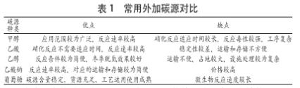 常用的外加碳源有甲醇、乙酸、酒業(yè)廢水、乙酸鈉、淀粉、葡萄糖和食品加工廢水等。表1所示常見的外加碳源的對比效果: